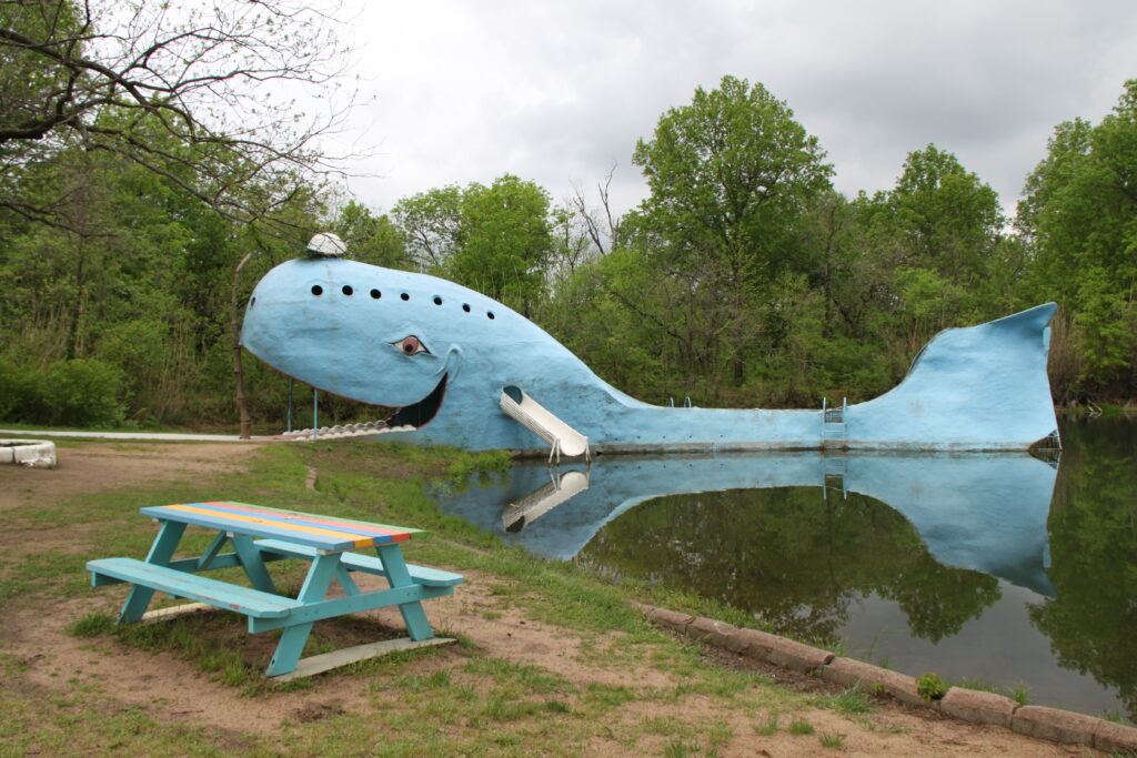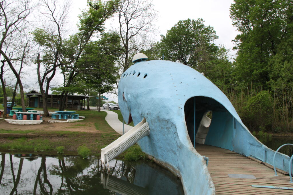 I dag kan du ikke bade der mere, men du kan se og gå ud i den iøjenfaldende blå hval. Det er et stop der hører til på enhver Route 66 tur.