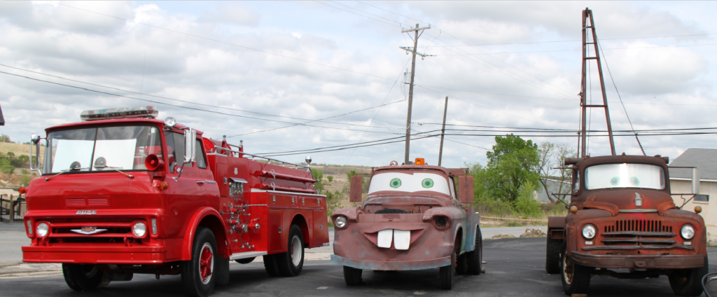 Gør et stop ved “Cars on the Route”, hvor du kan se den ældre mining boom truck, som karakteren Bumle i Disneys mega tegnefilmshit Cars blev bygget op om. Du kan også se en fuldskala kopi af Bumle fra Cars, som kaldes Tow Tater. Desuden er der et kopi af brandbilen og militærbilen fra Cars tegnefilmen samt en række andre ældre biler.